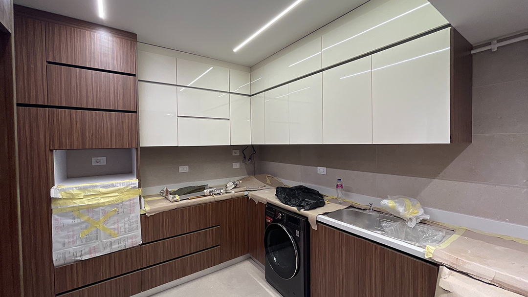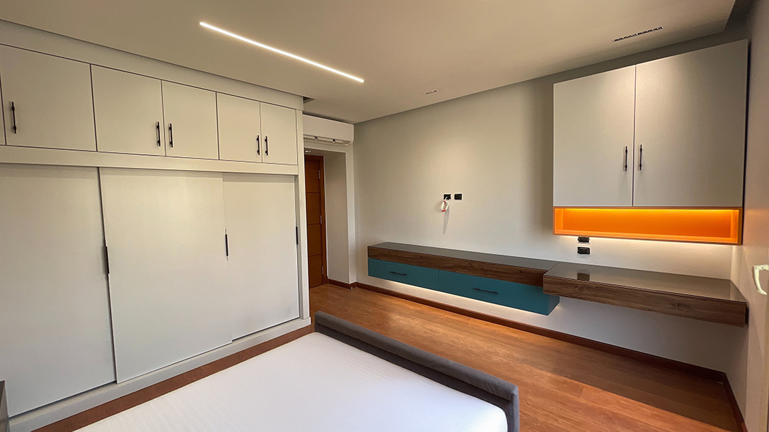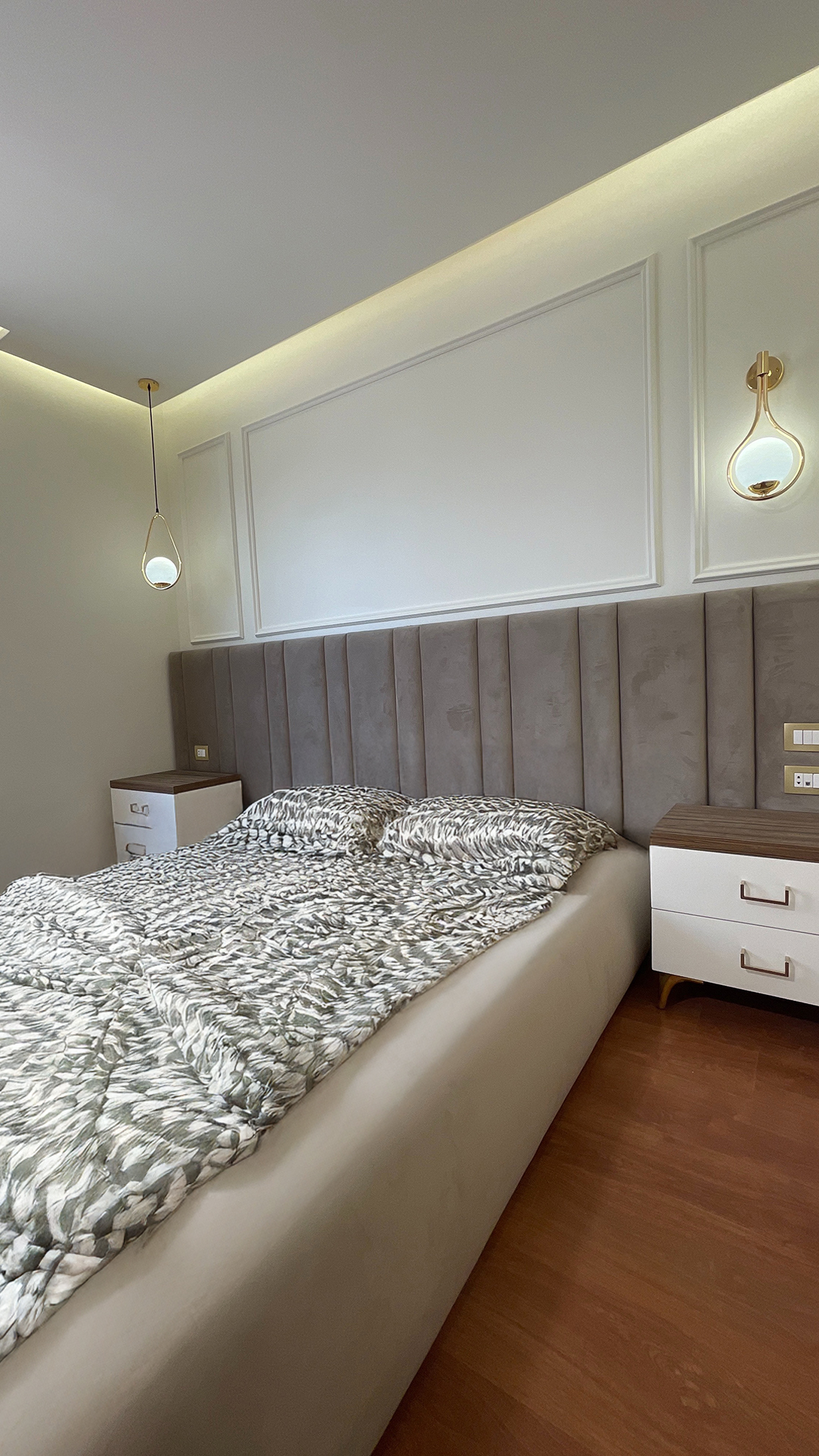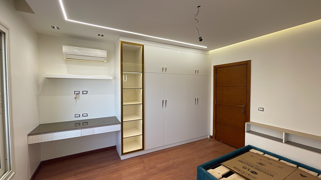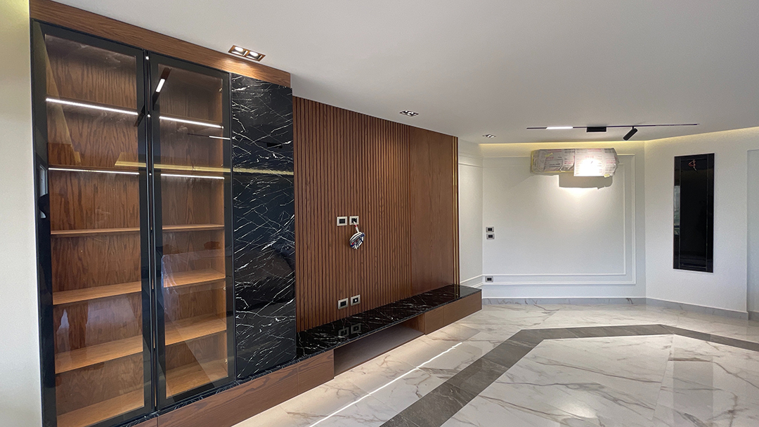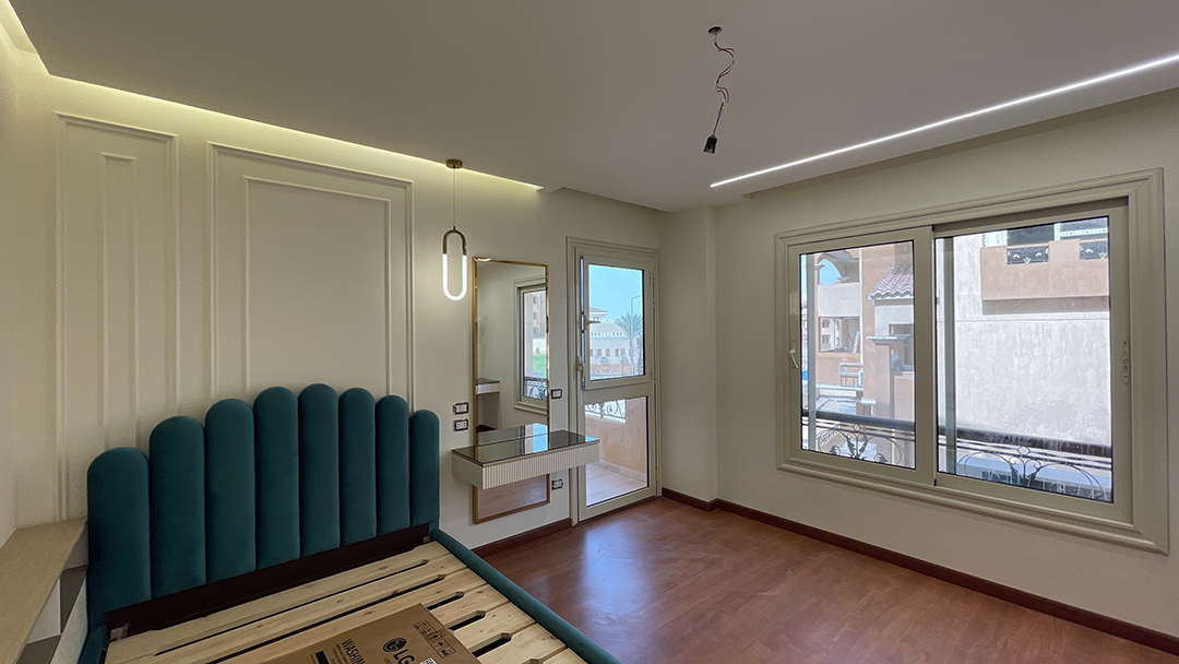 Step into the epitome of modern family living with this stunning apartment in Al Khamayel Compound, 6th of October City. Designed to perfection, this home reflects sophistication, warmth, and functionality for a family of four. The spacious living room serves as the heart of the home, featuring sleek furniture, an inviting color palette, and a custom entertainment unit that sets the tone for comfort and elegance. The expansive kitchen is a chef’s dream, boasting sleek cabinetry, quartz countertops, and a multifunctional island perfect for both meal prep and casual family gatherings. Each bedroom is thoughtfully crafted to reflect the unique personalities of its occupants—the boy’s room exudes energy and adventure, while the girl’s room radiates charm and tranquility with its pastel hues. The master bedroom is a luxurious retreat, designed to provide peace and serenity. Modern bathrooms with spa-like finishes add a touch of indulgence, while a cozy family space ensures precious bonding moments. This is more than just a home—it’s a lifestyle tailored for modern family living, where every detail has been designed with care and sophistication.