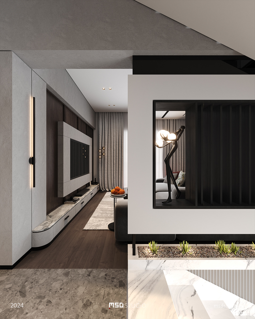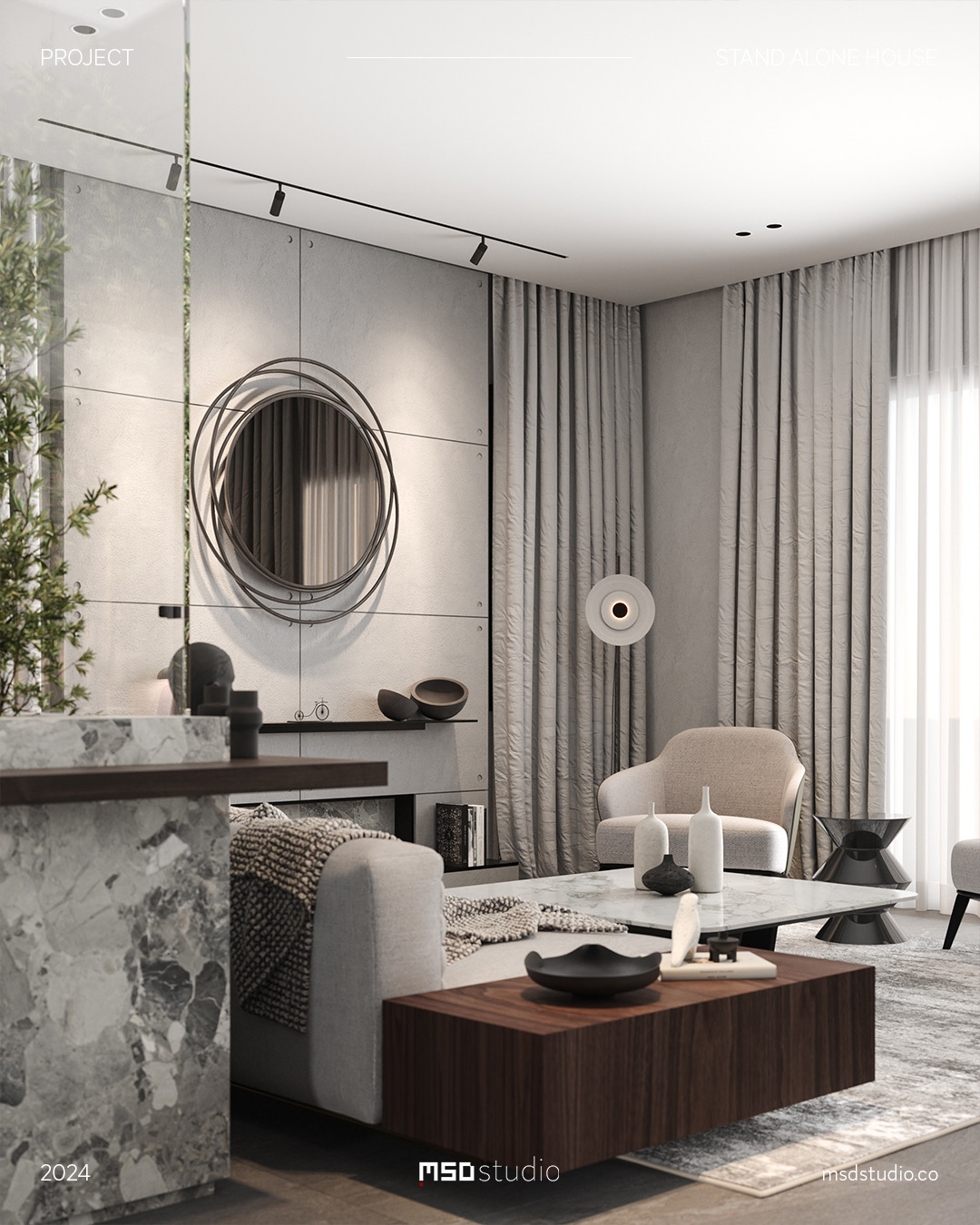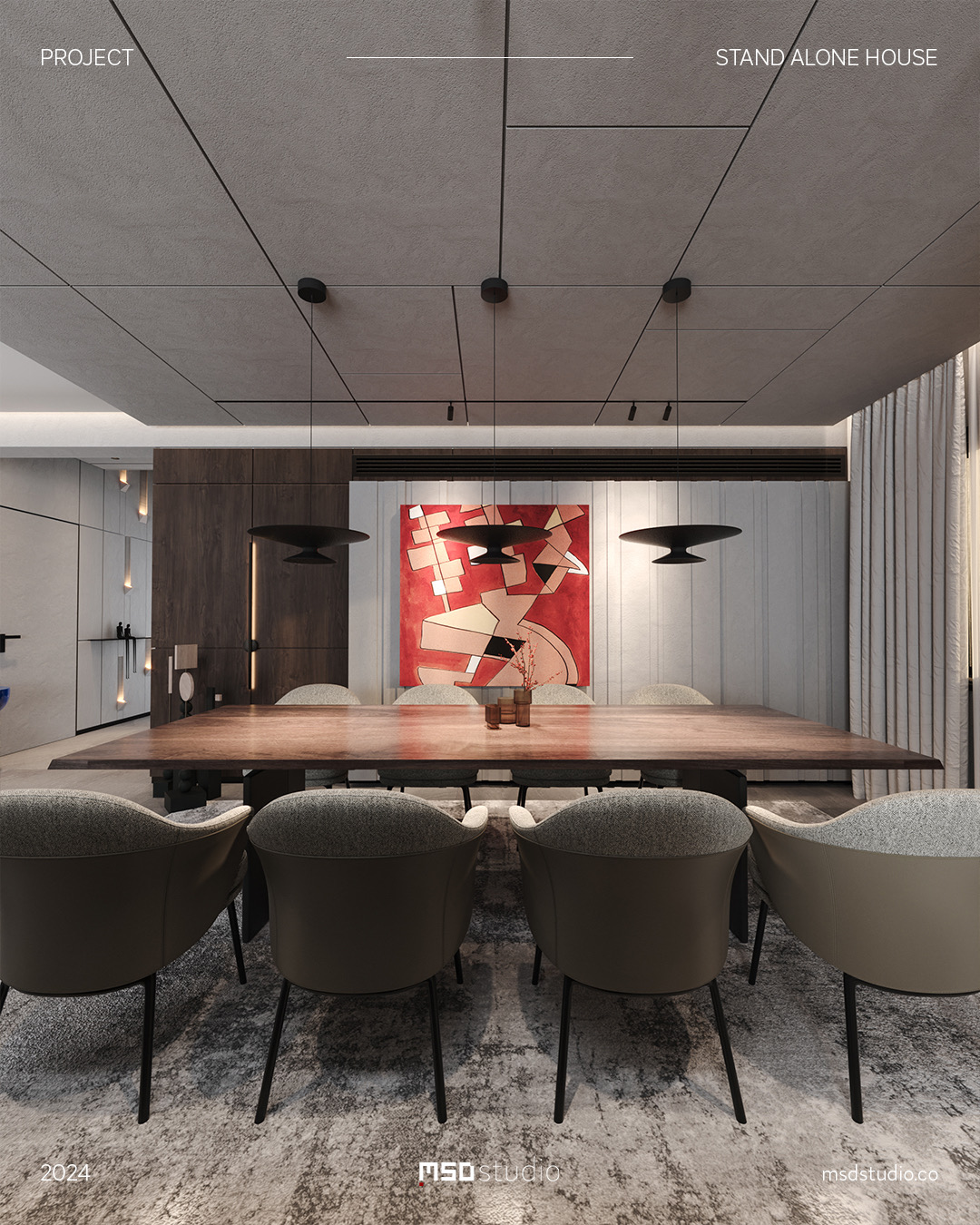 The concept design for this interior project aims to create an elegant space with a touch of Italian sophistication. By utilizing a mono tone color palette combined with carefully selected pops of color in portraits and accessories. additionally