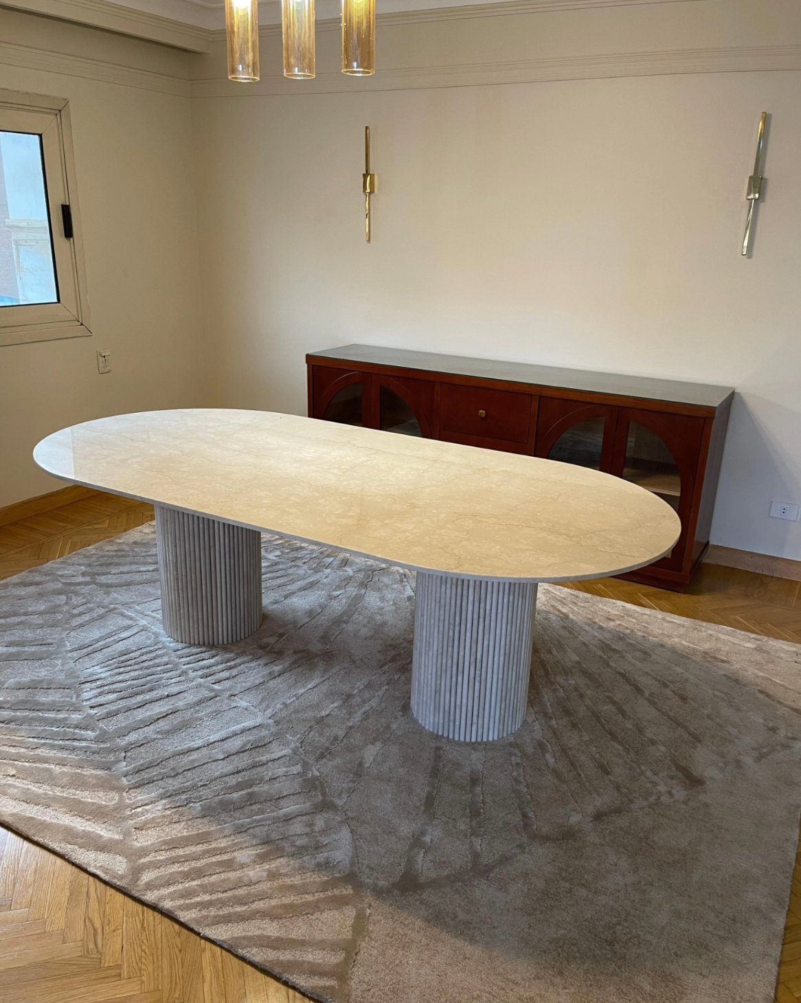 ESTRIADA Dining Table In Italian Bottitcino Classic Marble